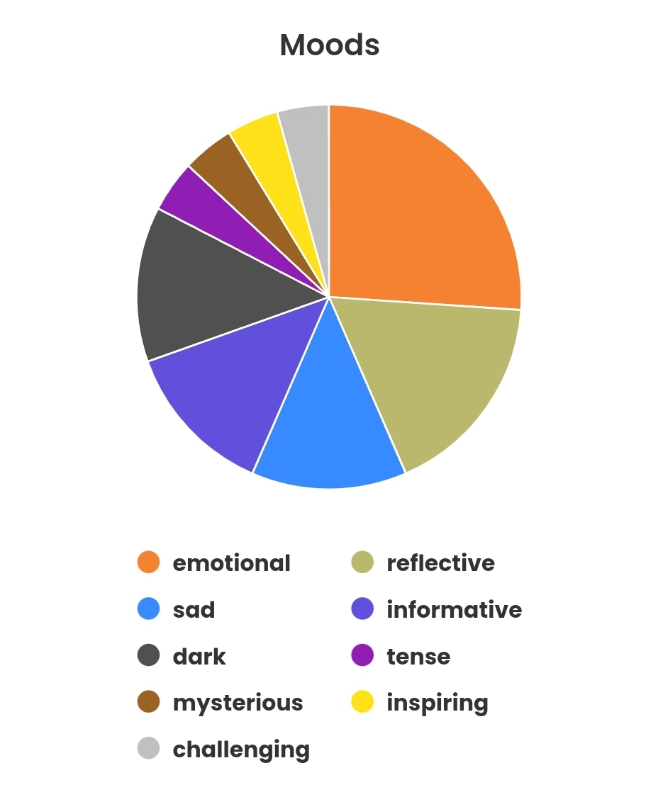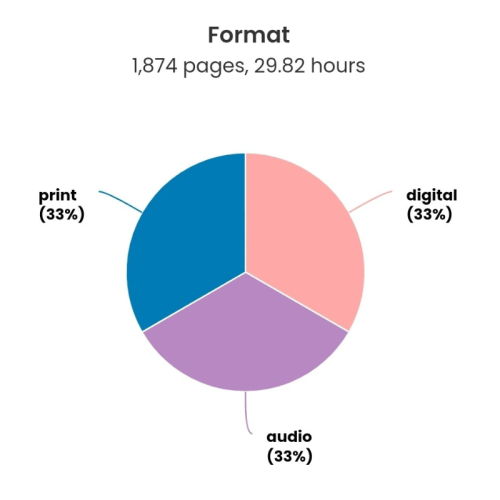 These charts are primarily from the Storygraph app, which is an alternative to the Amazon-owned Goodreads.