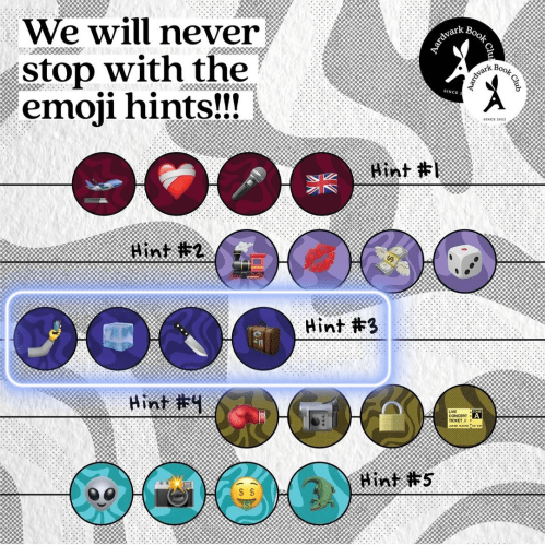 For May, Aardvark posted on shared hint shown below. I have circled the appropriate sequence of emojis for each book. The last picture for each book is the mood board, which is posted after the books have been announced.