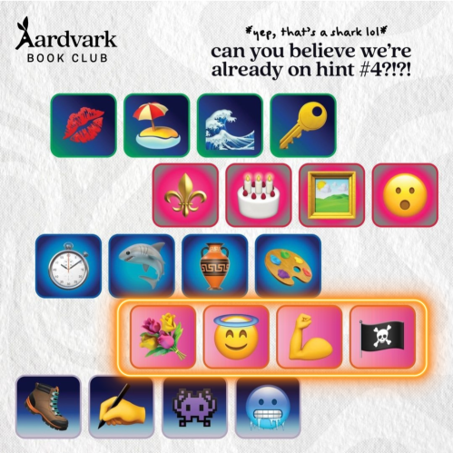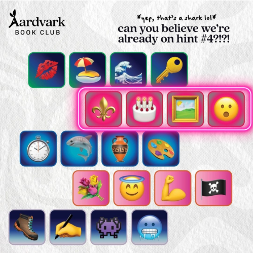 As the end of the month approaches, Aardvark Book Club starts posting hints for their upcoming month’s selection. While the type of hints changes from month-to-month, they remain fun to follow along with. I typically make guesses as to what books they will be in my Instagram stories, but I thought I would also share them here.