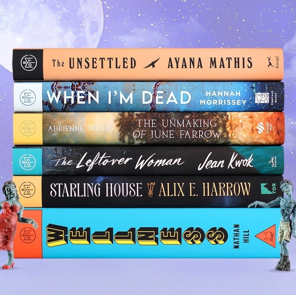 There are six main and five add-on Book of the Month (BOTM) selections for October, including absolutely no debuts (yet again) and four books by repeat authors. The remaining books are by authors big and small. Both Wellness and The Unsettled are September releases.