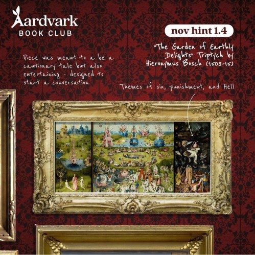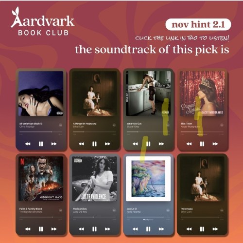 As the end of the month approaches, Aardvark Book Club starts posting hints for their upcoming month’s selection. While the type of hints changes from month-to-month, they remain fun to follow along with. I typically make guesses as to what books they will be in my Instagram stories, but I thought I would also share them here.