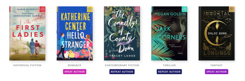 July selections were 5 main selections & 1 add-on. Two books were early releases while all of the books were by repeat authors.