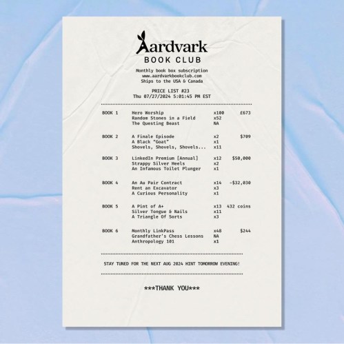 It is the end of another month, which means that it’s time for Aardvark to drop book hints!