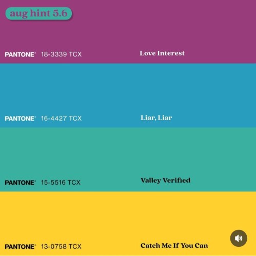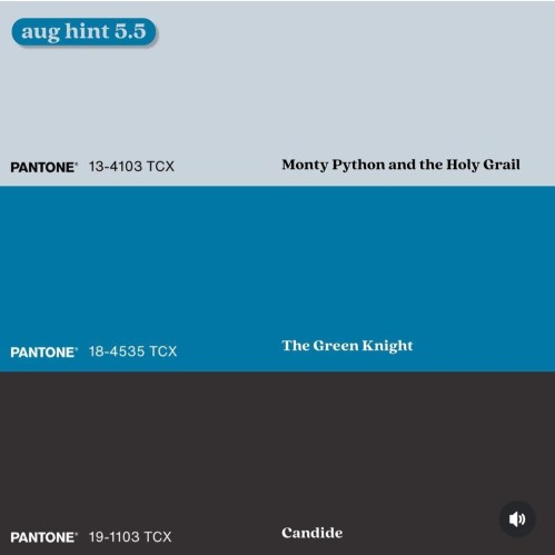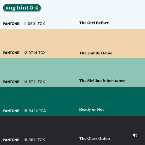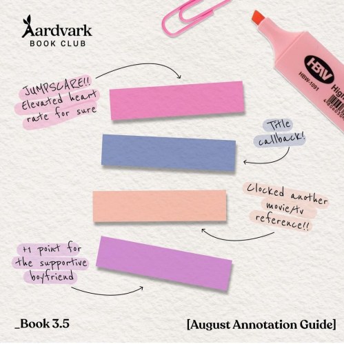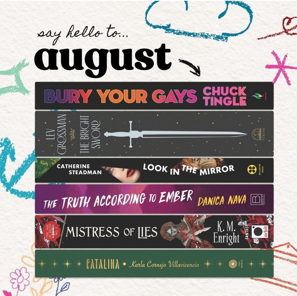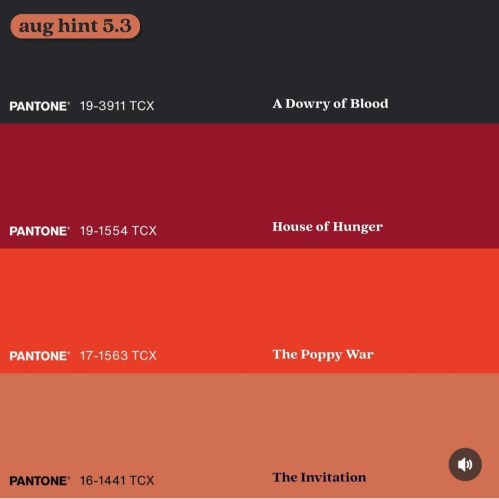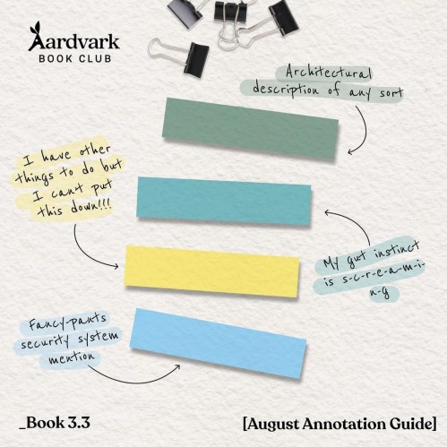 These clues are all how Aardvark would annotate the August picks. (The color scheme of the tabs also match the covers.)