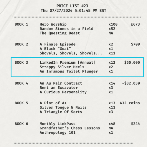 Hint 1.3: LinkedIn Premium [Annual], Strappy Silver Heels, An Infamous Toilet Plunger