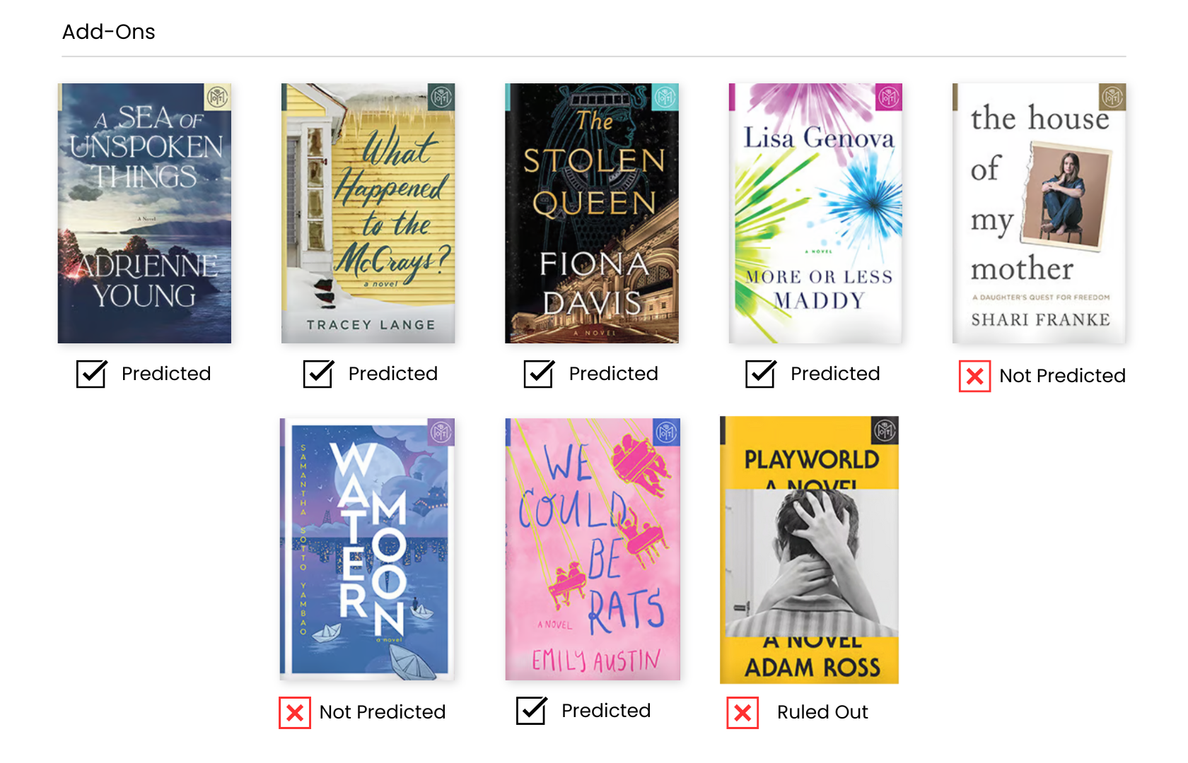 This month, Book of the Month (BOTM) chose 6 main selections and 7 initial add-ons.