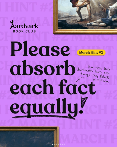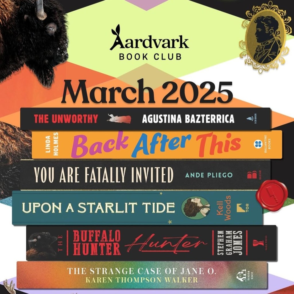 Aardvark Book Club is a monthly book subscription box in which members choose up to 3 hardcover books each month from a selection of new releases or previous selections. Aardvark Book Club ships to both the U.S. and Canada and provides a platform to discuss books. To get your first book for $4, use the promo code READBETWEENTHESPINES.