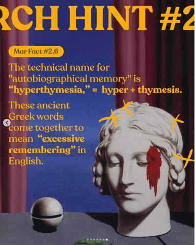 Hint 2.6: Jane O. has hyperthymesia, one of the reasons Dr. Byrd, the psychiatrist, becomes increasingly fascinated by her case.