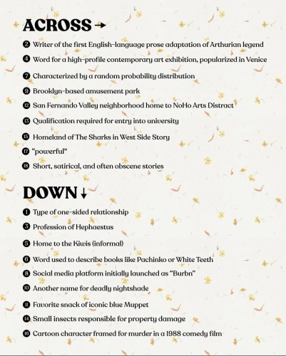 Hint 3: Thomas Malory (2A), Puissant (17A), & Fabliaux (18A)