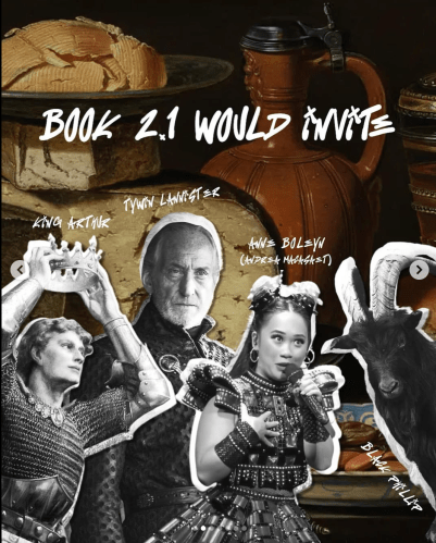 Hint 2.1: King Arthur (Folk hero and legendary King of Britain), Tywyn Lannister (Hand of the King on Game of Thrones), Anne Boleyn (Second wife of King Henry VIII.), and Black Phillip (Assumed mortal form of Satan himself)
