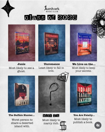 This is the only hint this month that instantly screamed a specific book to me. I think it easily makes sense that the hint indicates Julie Chan Is Dead. There is also the possibility that this is Parents Weekend. It would make sense that it is since there are 5 friends and 5 superlatives in the hint.