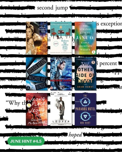 Hint 4.5: The Time Traveler’s Wife, Before the Coffee Gets Cold by , The Strange Case of Jane O. by Karen Thompson Walker, Dissolution by Nicholas Binge, Source Code, The Other Side of Night by Adam Hamdy, Wrong Place Wrong Time by Gillian McAllister, Looper, and The Paradox Hotel by Rob Hart