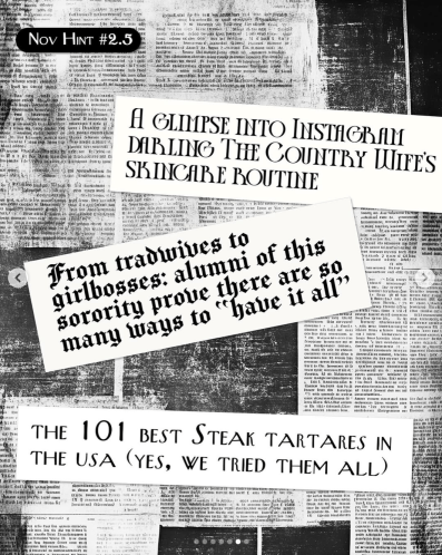 Hint 2.5: A glimpse into Instagram darling The Country Wife’s skincare routine. From tradwives to girlbosses: alumni of this sorority prove there are so many ways to “have it all.” The 101 Best Steak Tartares in the USA. (Yes, we tried them all.)