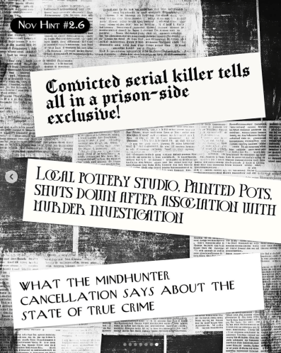 Hint 2.6: Convicted serial killer tells all in a prison-side exclusive! Local pottery studio, Printed Pots, shuts down after association with murder investigation. What the Mindhunter cancellation says about the state of true crime.