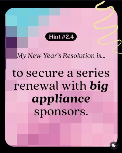 Hint 2.4: My New Year’s Resolution is to secure a series renewal with big appliance sponsors.